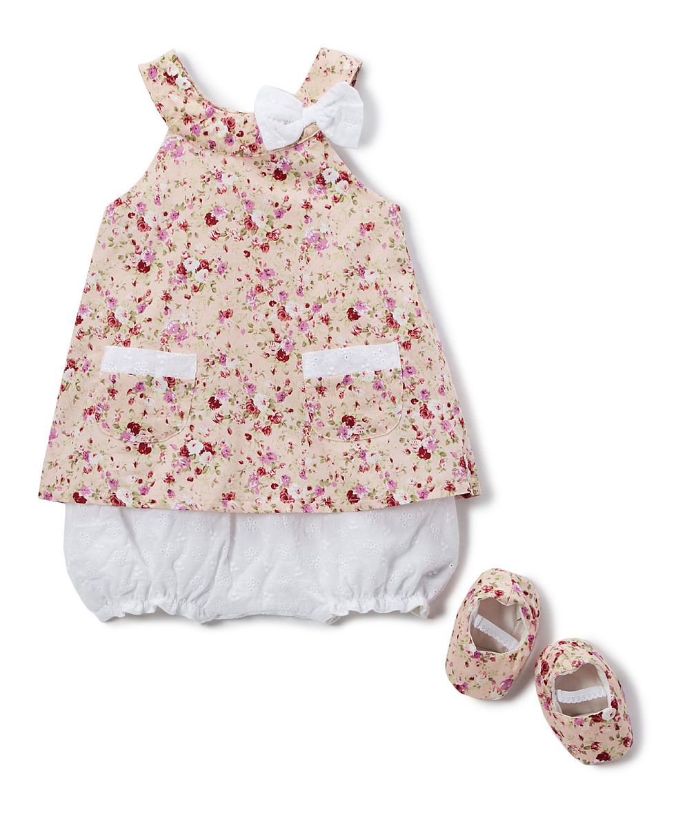 Blush Floral & Plaid Skirted Bodysuit & Headband - Infant